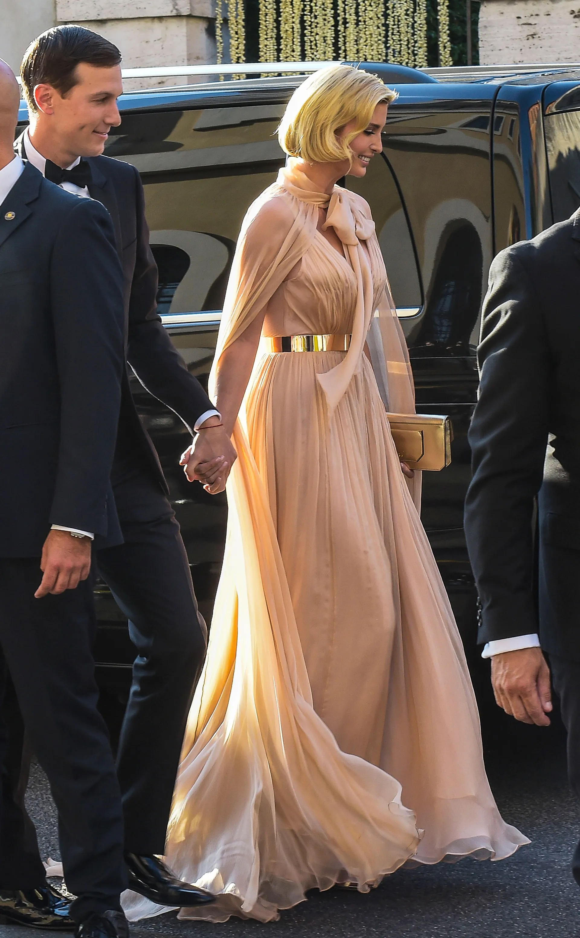 The royals weren’t alone. Other fashionable attendees included the first daughter, who looked like a modern day goddess in a blush chiffon dress with a dramatic cape. She elevated the look even more with soft makeup and a metal belt cinched at the waist.