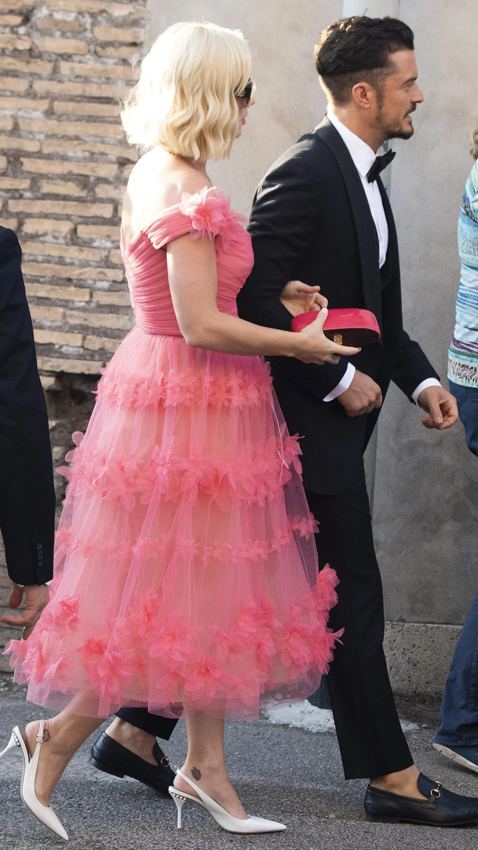 As if that wasn’t enough, Perry and fiancé Orlando Bloom walked hand-in-hand looking cool, dapper and seriously trendy. He put his own spin on the classic tux, opting for loafers without socks and trousers cut a little short to show them off. She also went a bit bolder, wearing a tulle pink dress with rows of flowers embroidered on the sheer skirt. She topped off the look with white accessories, which included cat-eye shades and kitten heels.