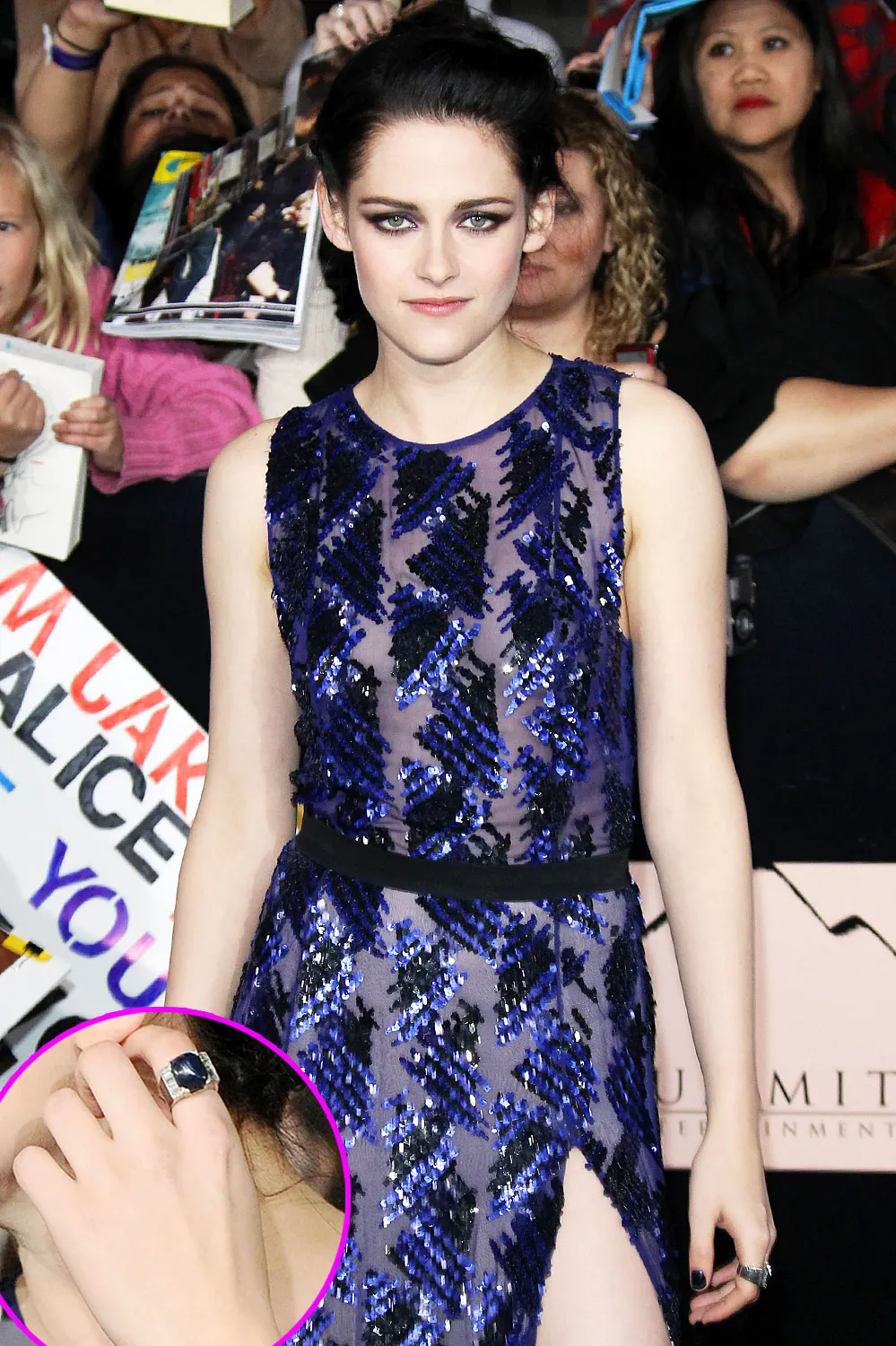 Premiering Twilight: Breaking Dawn - Part 1 in L.A. in 2011, the film franchise's leading lady spared no expense to wow on the red carpet. Dressed to the nines in a long, sequined J. Mendel gown with a sexy thigh-high slit, Stewart accessorized with a amethyst, diamond and platinum ring by Neil Lane worth an estimated $38,000.