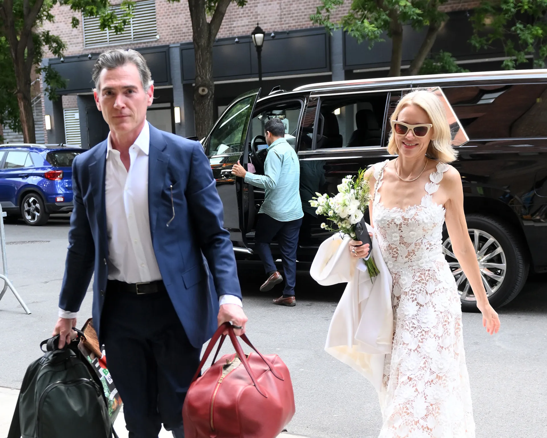 Naomi Watts went with a designer dress, but she didn’t break the budget on her wedding flowers while tying the knot with Billy Crudup on Friday, June 9.