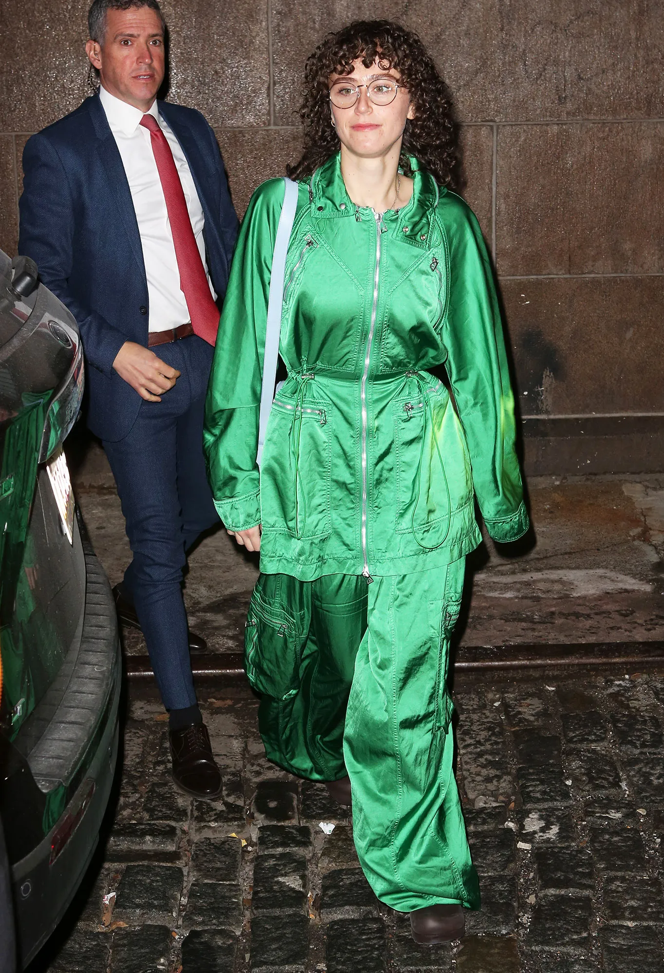 Model Sara Sampaio took a page out of the same playbook, rocking a mesh black and sequin ensemble as well. She layered a bedazzled bodysuit under her Redemption blazer and Giorgio Armani shorts. She let the glitz speak for itself (you have to see her earrings!) and reached for a simple black Yves Saint Laurent crossbody bag.