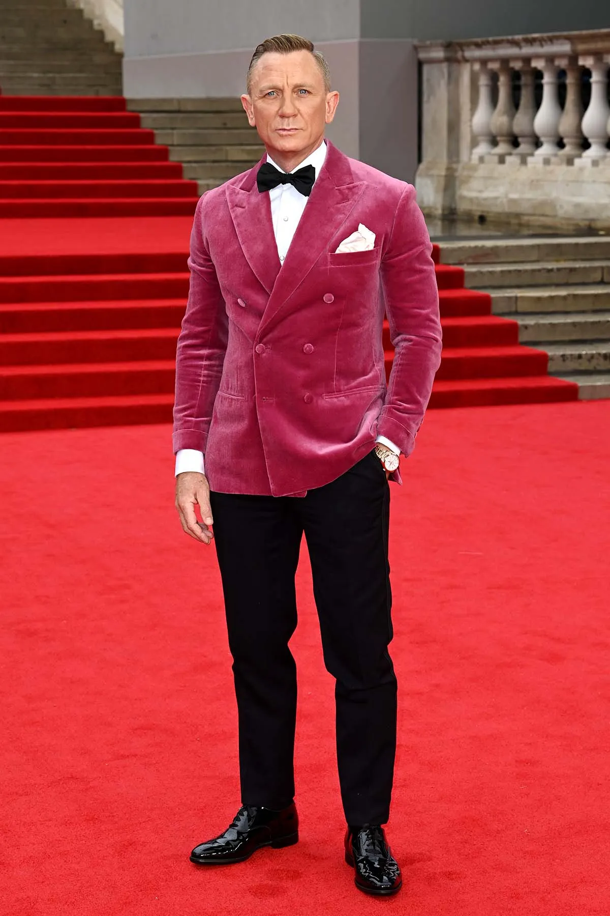From Daniel Craig’s pink velour suit jacket to Lashana Lynch’s Vivienne Westwood gown, keep scrolling to check out all the fabulous fashion from the No Time To Die premiere.