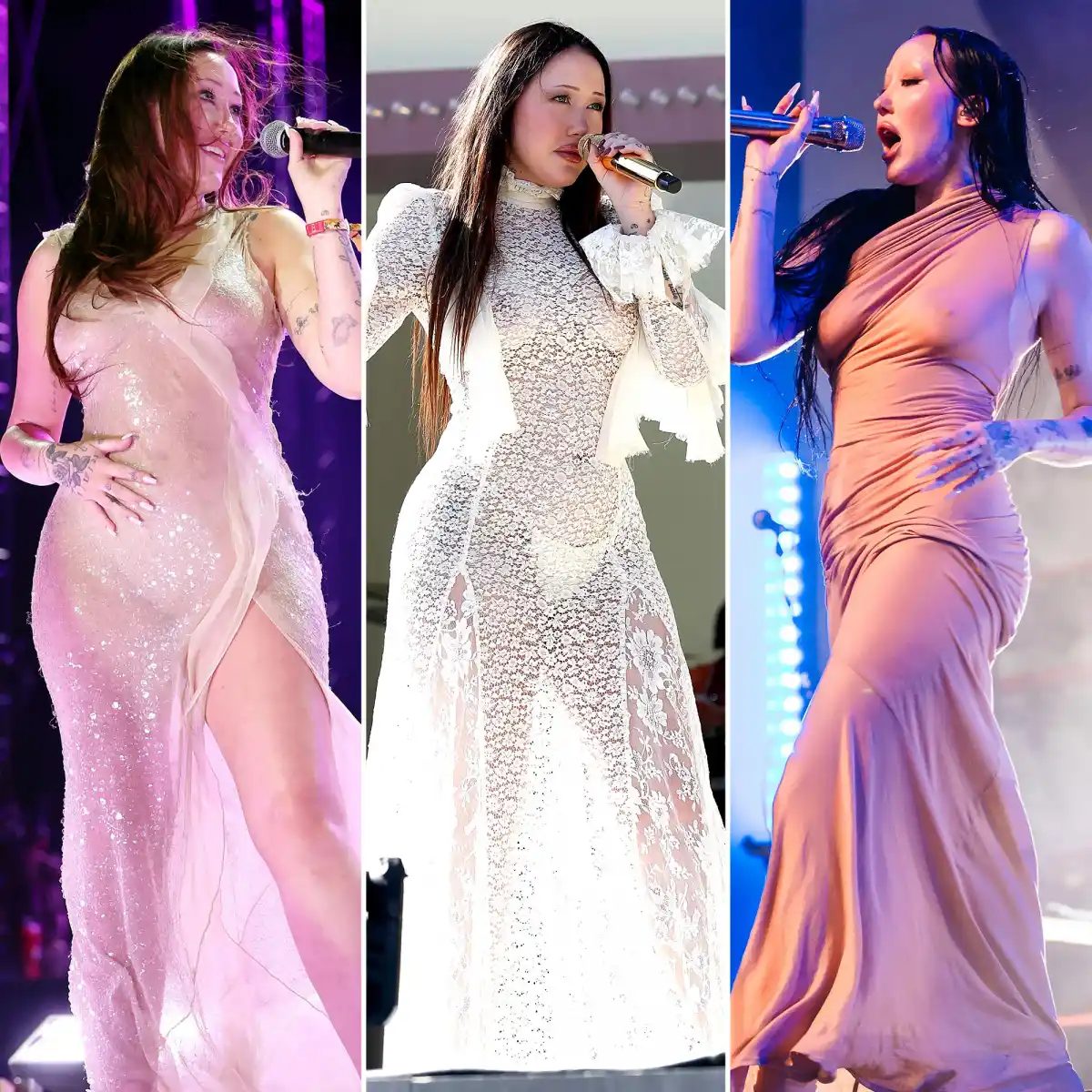 In April 2025, she left little to the imagination in a nude sequin dress featuring a plunging, ruffled neckline and a flowy skirt, as she performed at Stagecoach. Cyrus let fans have a glimpse at her nipples in the look, as well as her bum, when she turned around wearing nothing but a thong.