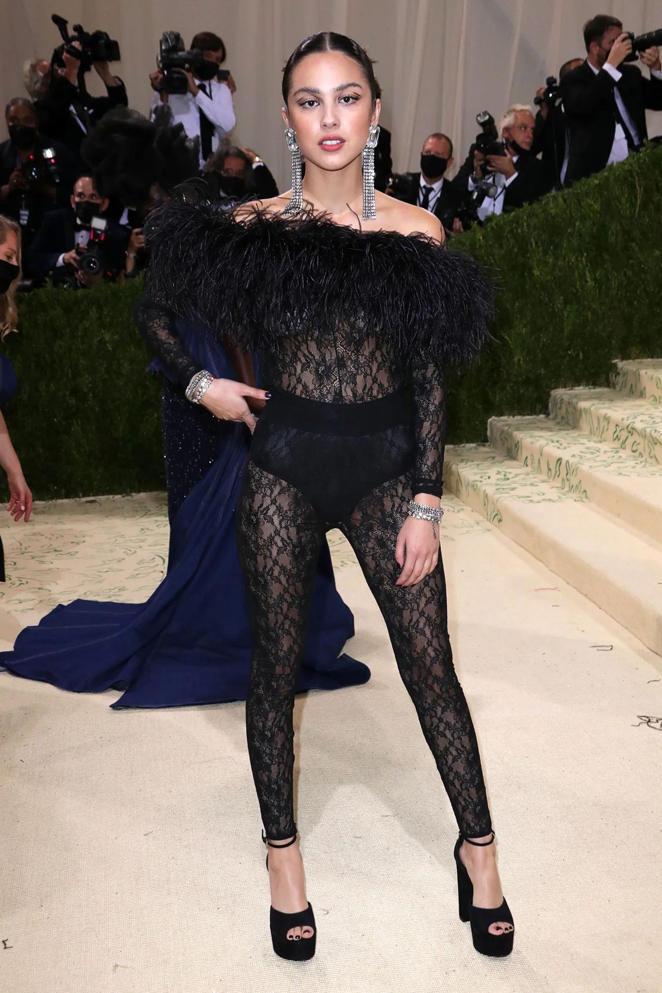 One of her most talked about looks is her fabulous dress at the 2022 Met Gala. The lavender Versace gown sparkled all night. It featured a gorgeous cowl neckline and straps draped perfectly over her body. The thigh high slit showed just the right amount of the artist’s skin. She wore sheer purple gloves and added bling underneath with diamond rings. As for glam, the “Happier” singer rocked a smokey purple eyeshadow look and light face makeup. Rodrigo finished the look with her long wavy locks and purple butterflies pinned in her hair.