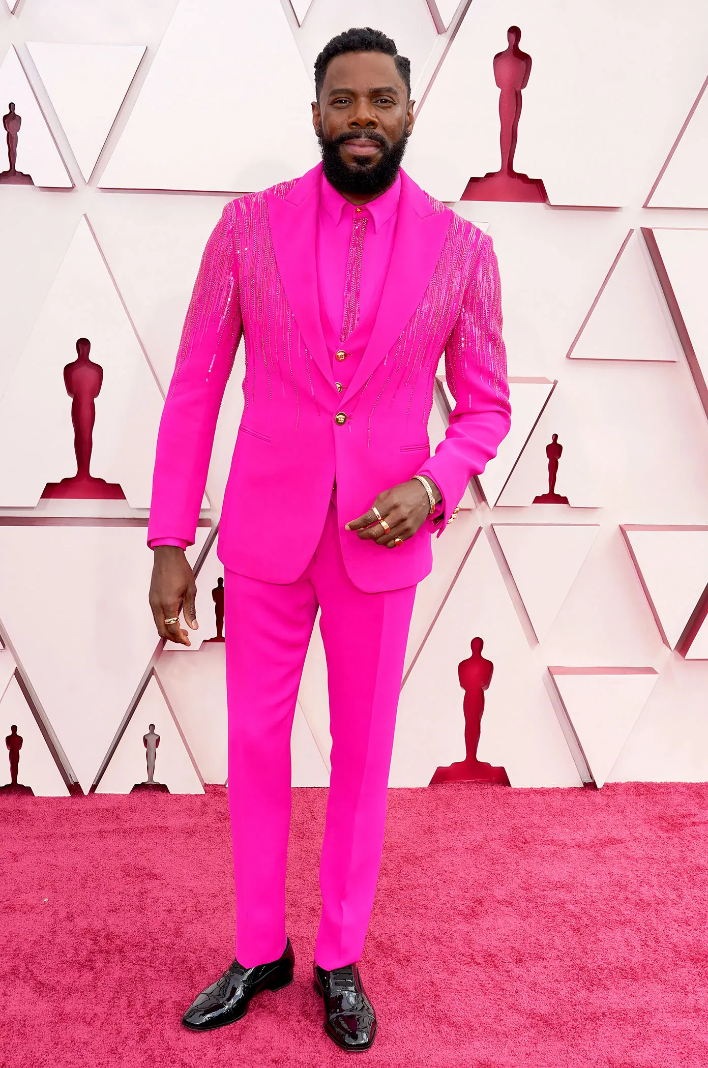 This list wouldn’t be complete without a proper shoutout to Colman Domingo, who has absolutely exceeded our expectations. He was a refreshing pop of hot pink on the carpet, wearing a 3-piece Atelier Versace suit and Christian Louboutin shoes. In line with the influx of man jewelry, he also repped David Yurman, wearing a gold bracelet and 3 rings that matched the buttons on his blazer.