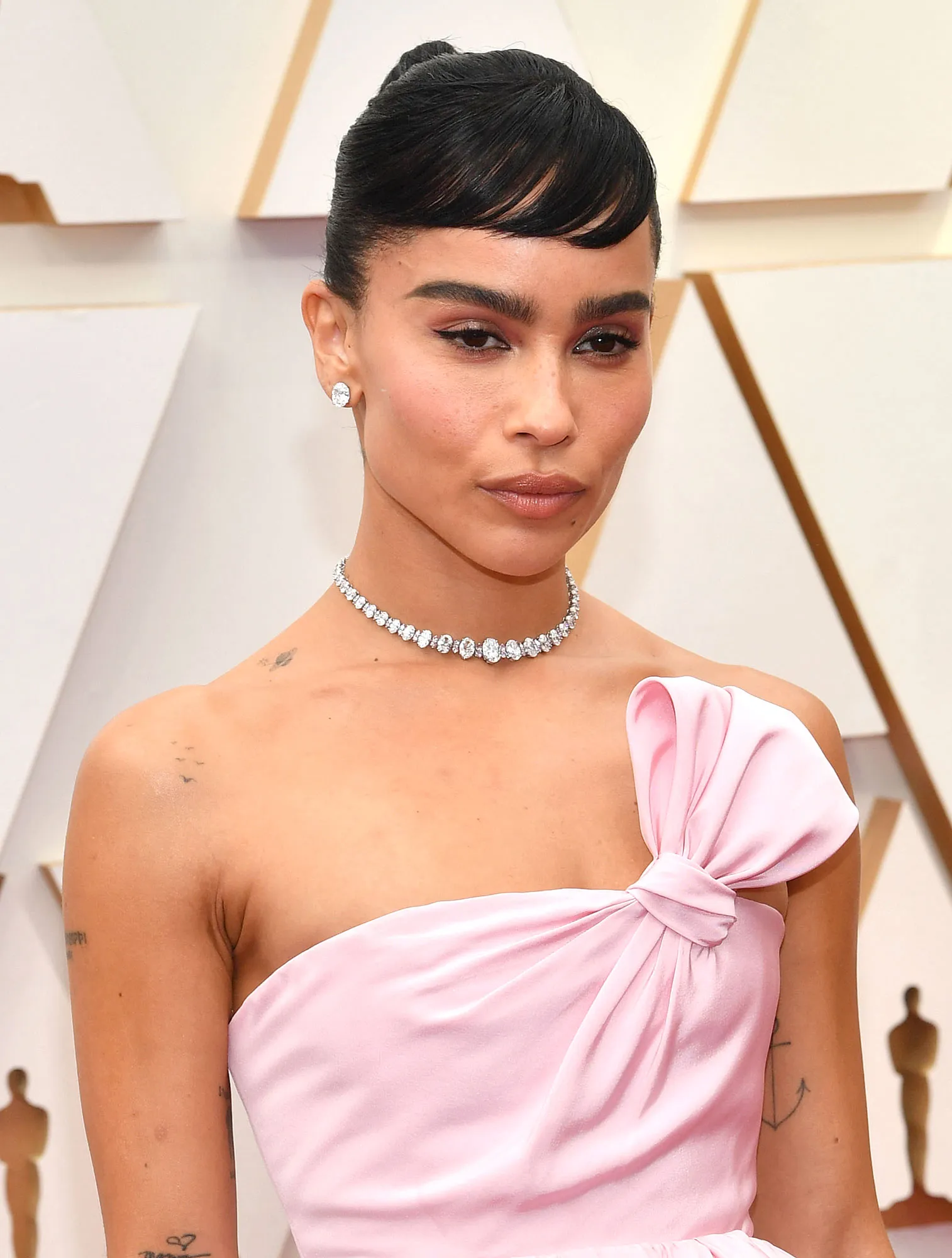 While the simple subtlety of a statement ring or studs can be seriously chic, we’re kicking off our roundup by shining a line on the stars who brought the most sparkle. First and foremost? Zoë Kravitz. The 33-year-old actress opted for a 36-carat (!!!) oval diamond and fancy pink diamond necklace from Kwiat. She also donned 3-carat oval diamond studs from the jewelry house. The glitz was the perfect addition to her stunning pale pink Saint Laurent gown.