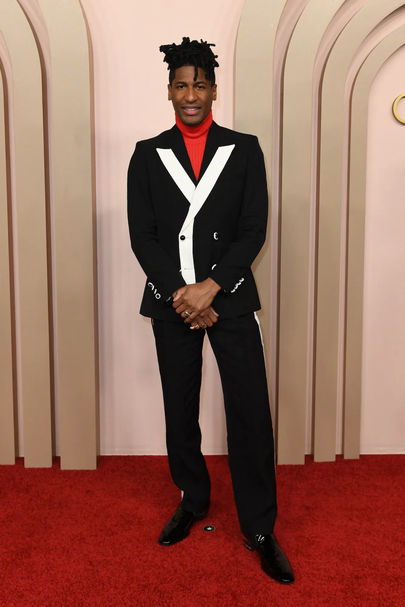 Emma Stone, meanwhile, looked classy in a Louis Vuitton blazer featuring silky white lapels and silver hardware. She paired the look with black slacks and matching pumps. Her auburn hair was parted down the middle and slicked back into a ponytail.
