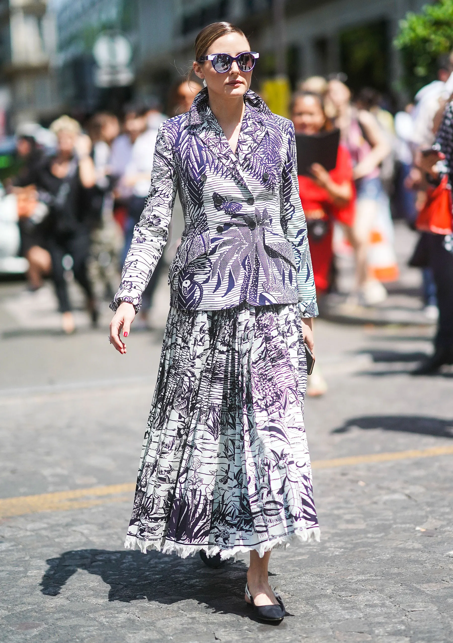 She wasn’t the only standout star showing off in the City of Lights. Olivia Palermo — always a street style hit — has worn multiple different ensembles, sometimes even on the same day. Our favorites? A print Dior skirt-and-blazer combo and a white-trim jumpsuit she wore overtop a Karl Lagerfeld turtleneck.