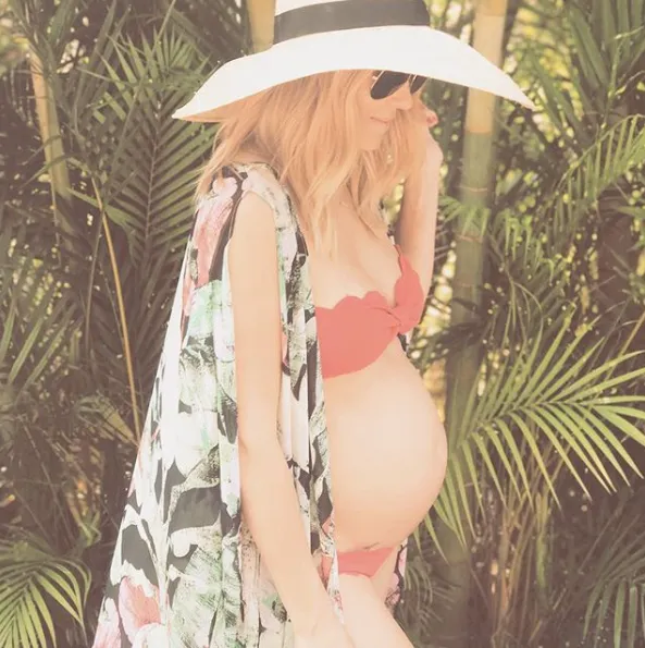 A few examples: Last year, Rosie Huntington-Whiteley sweetly announced she was expecting her first child with Jason Statham by posing for a picture on the beach revealing her baby bump in a chevron-printed bikini. “Very happy to share that Jason and I are expecting,” she captioned the pretty pic. Just days after announcing she is pregnant with her third child — a baby girl — with boyfriend Danny Fujikawa, Kate Hudson posted a poolside selfie on Instagram showing off her growing tummy in a red two-piece with the caption “a different kind of beach bod brewing.”