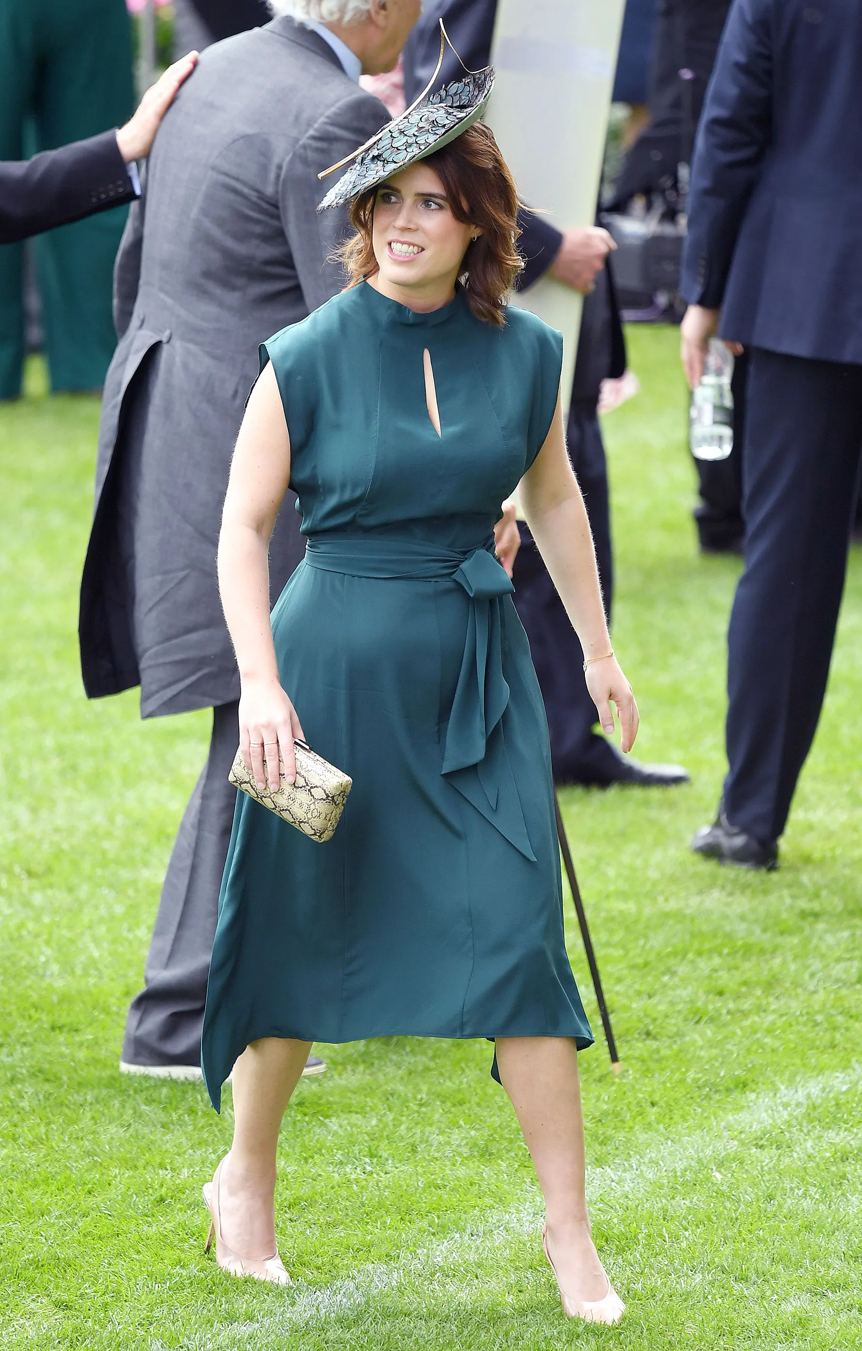 Another standout ensemble is the baby blue Giansbourg frock she wore to Meghan and Harry’s May 2018 wedding. The following year, she was a must-see in a champagne-colored wrap dress at the Buckingham Palace garden party.