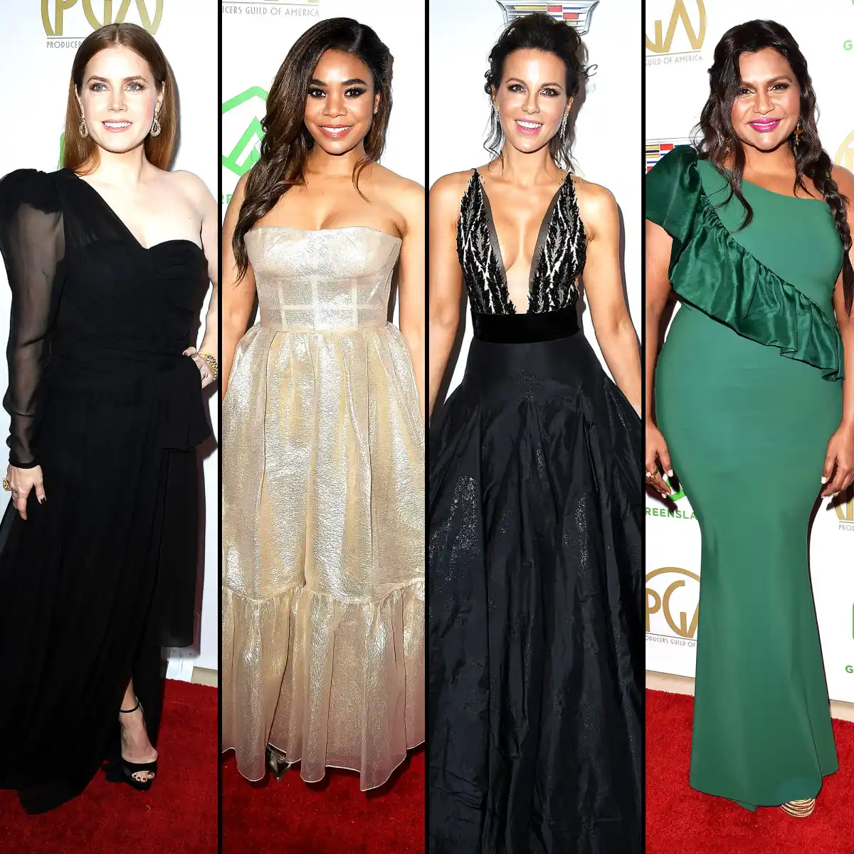 Sticking mainly to darling dresses and gorgeous gowns, Amy Adams and Kate Beckinsale proved that black is anything but boring in Dundas and Yanina Couture respectively. Mindy Kaling, meanwhile, was a vision in green Oscar de la Renta, and Regina Hall shimmered in Reem Acra. And that was just the tip of the fashion iceberg.