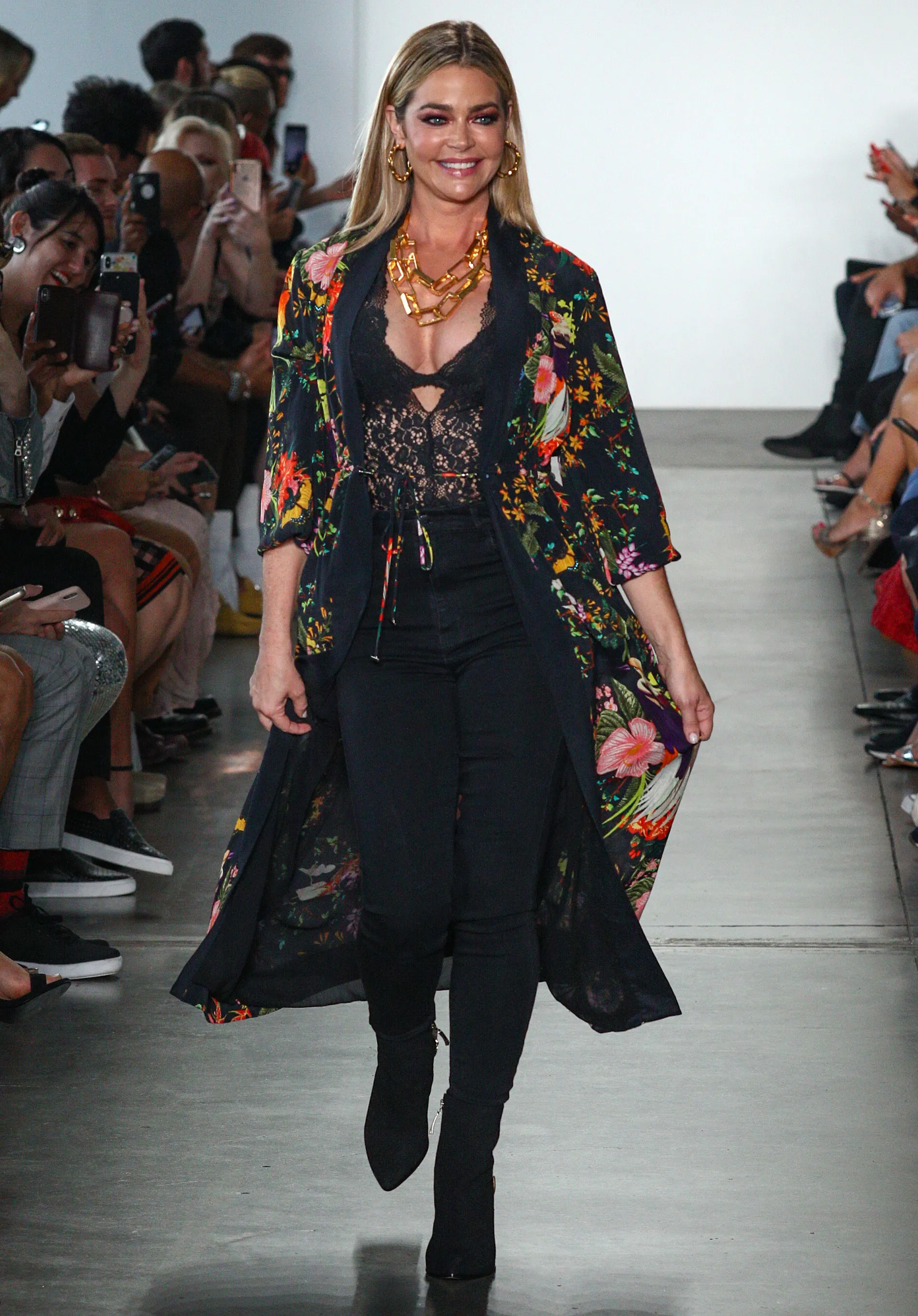 Co-created with designer Shahida Clayton, the playful and colorful designs were walked down the catwalk by fellow housewives, including Denise Richards, Erika Jayne, Dorit Kemsley, Teddi Mellencamp Arroyave and Lisa Rinna.