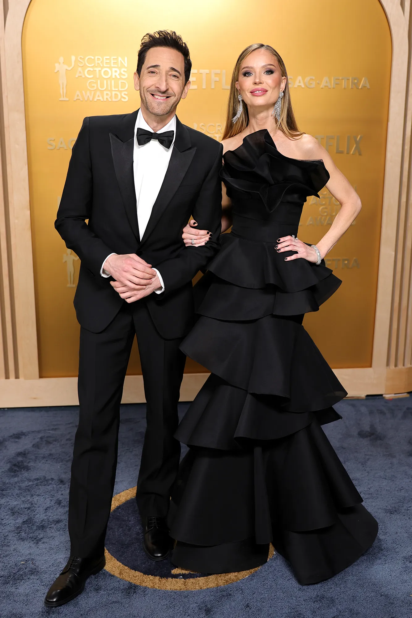 Adrien, who is nominated for The Brutalist, was all smiles while walking the red carpet with his girlfriend, Georgina Chapman. The 51-year-old actor donned a black suit and his date, 48, matched in a tiered black dress with silver jewels.