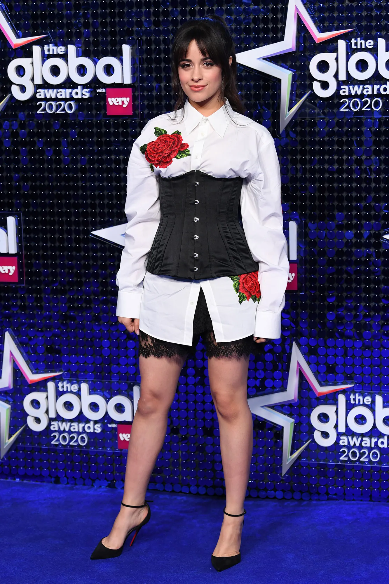 For glam that night, Cabello styled her brunette locks in waves, which cascaded down to her waist. The “Never Be The Same” musician added even more drama to the look with an extravagant makeup look. A deep purple shade was blended out to her eyebrows, and on her lid was a shimmery hue, finished with flirty eyelashes and a violet pigment on her waterline.