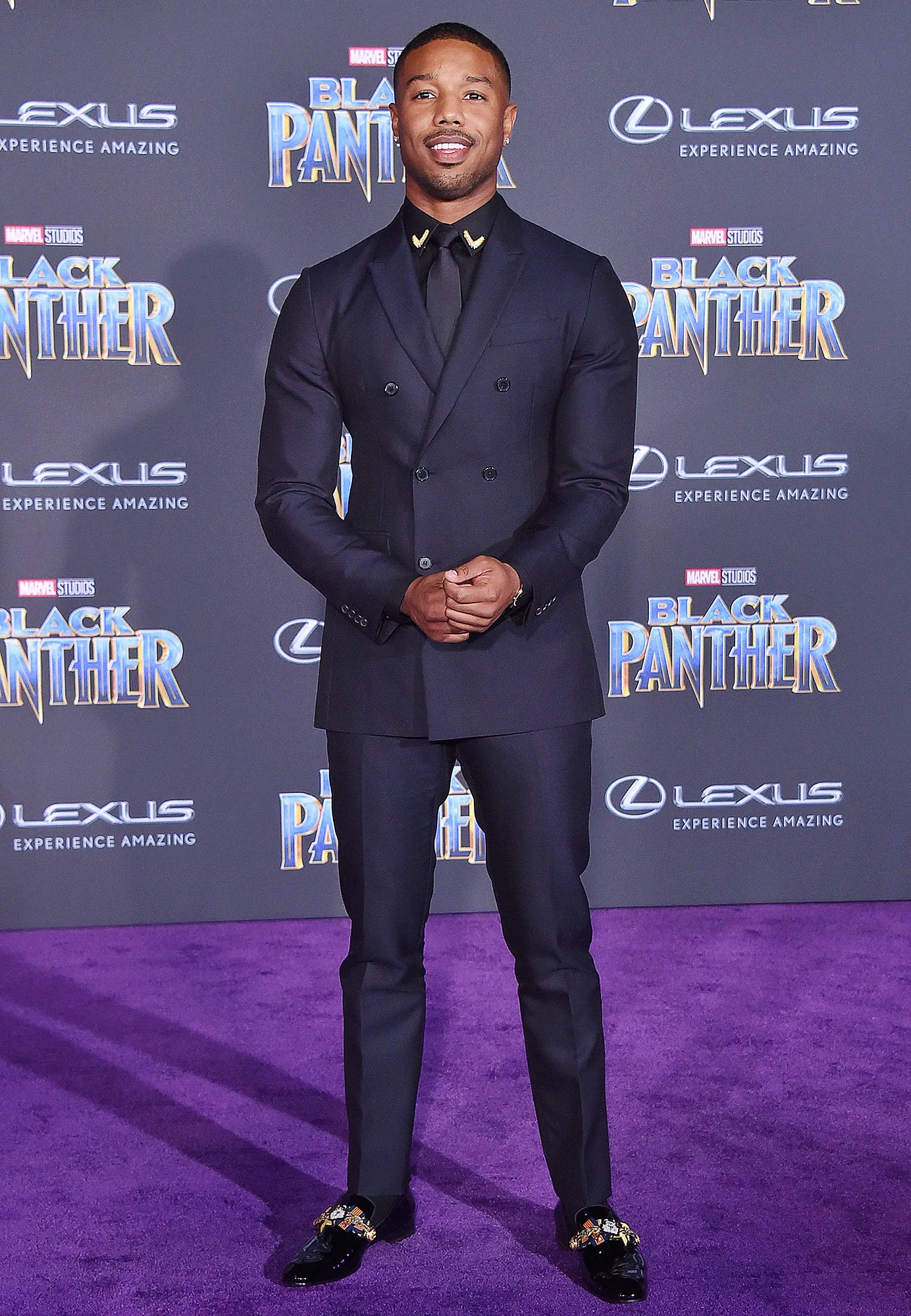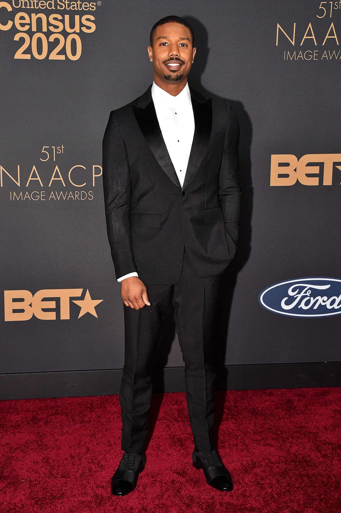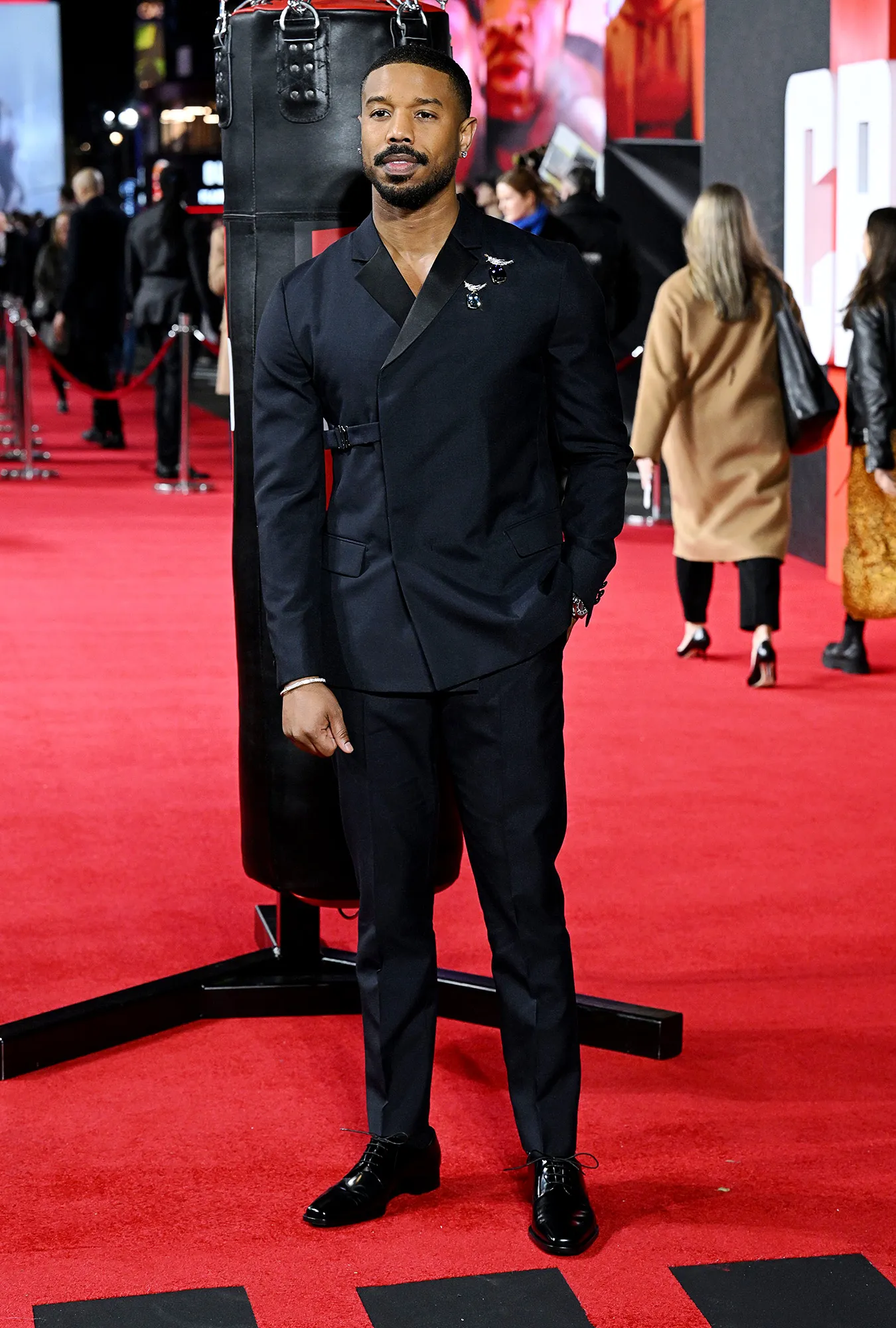 At the Creed III premiere in February 2023, Jordan turned heads in a silk suit by Givenchy. The glossy number featured a sharp jacket with a raised collar and tailored pants. The California native accessorized with a sparkly brooch and donned classic black loafers.