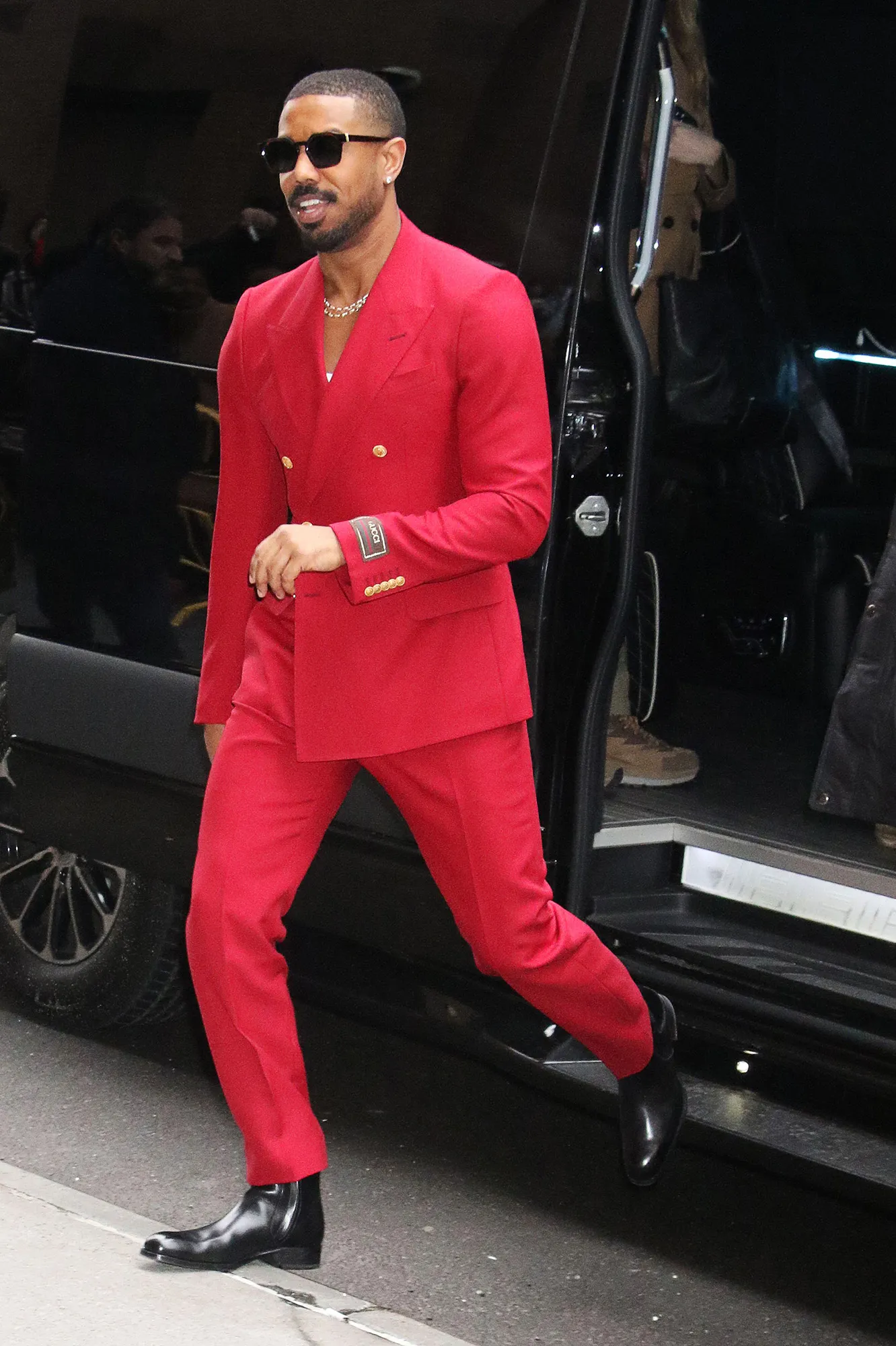 Days earlier, the Wire alum had all eyes on him as he was spotted arriving for an appearance on The View in New York. That day, he looked radiant in a red double-breasted blazer and fitted pants. Jordan turned up the heat by pairing the ensemble with a low-cut tank and a gold chain. He also rocked sunglasses and shiny leather boots.