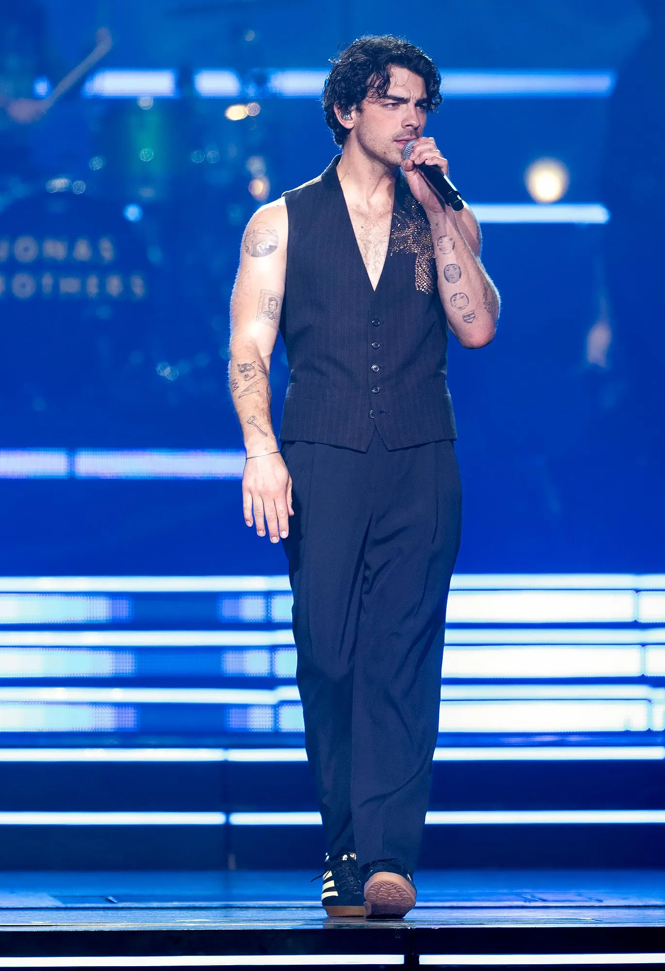 While performing in New York and Boston in August 2023, the brothers commanded attention in sparkly outfits. Joe rocked black sequin pants and Nick glittered in a green shirt. Kevin, meanwhile, sported a sky-blue bedazzled jacket. Kevin paired the outerwear with matching jeans and Joe opted for a sheer shirt and a tank top underneath. Their fashion senses stayed true to themselves while still slaying the stage.