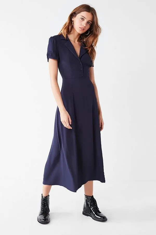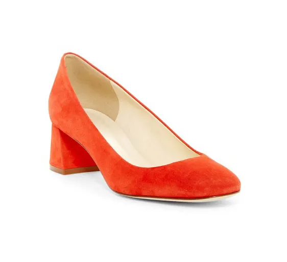 The best part about the look: it’s fresh but not loud. Navy is a great alternative to black because it’s both flattering and less severe than the darker hue. It’s a color but not quite. And the combination with a bright orange-y red lip? That’s what we call accessorizing with your lipstick.
