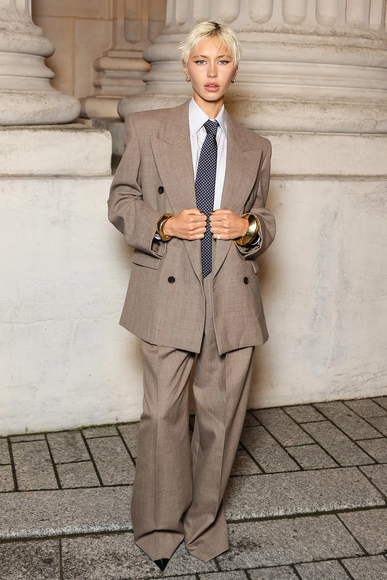 One of her most noteworthy looks came in 2019, at the Vanity Fair Oscar Party, when she rocked a Saint Laurent design featuring a deep V-neck, a column skirt complete with a thigh-high slit and long sleeves.
