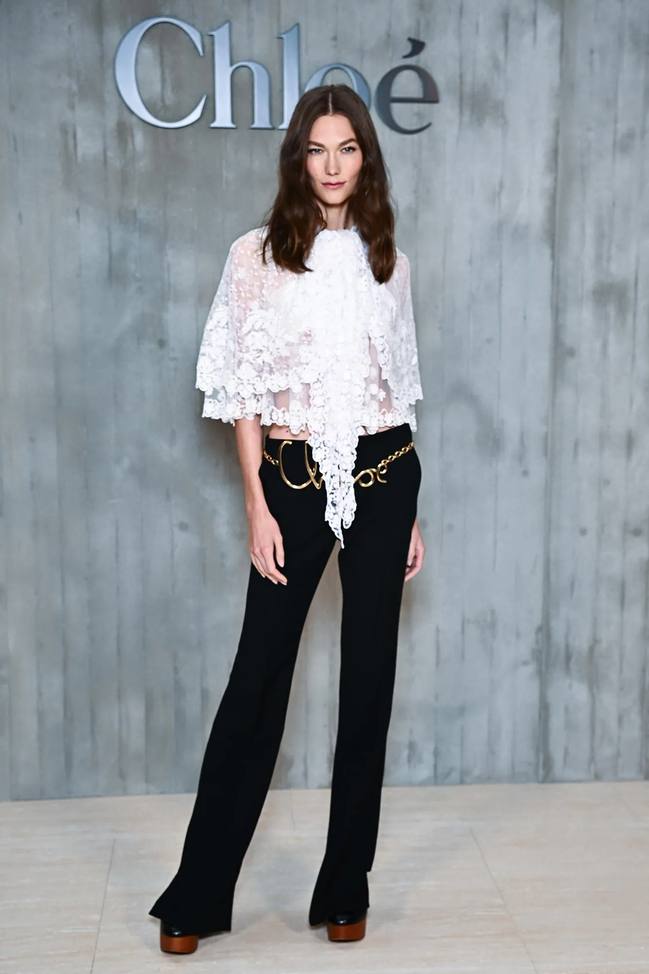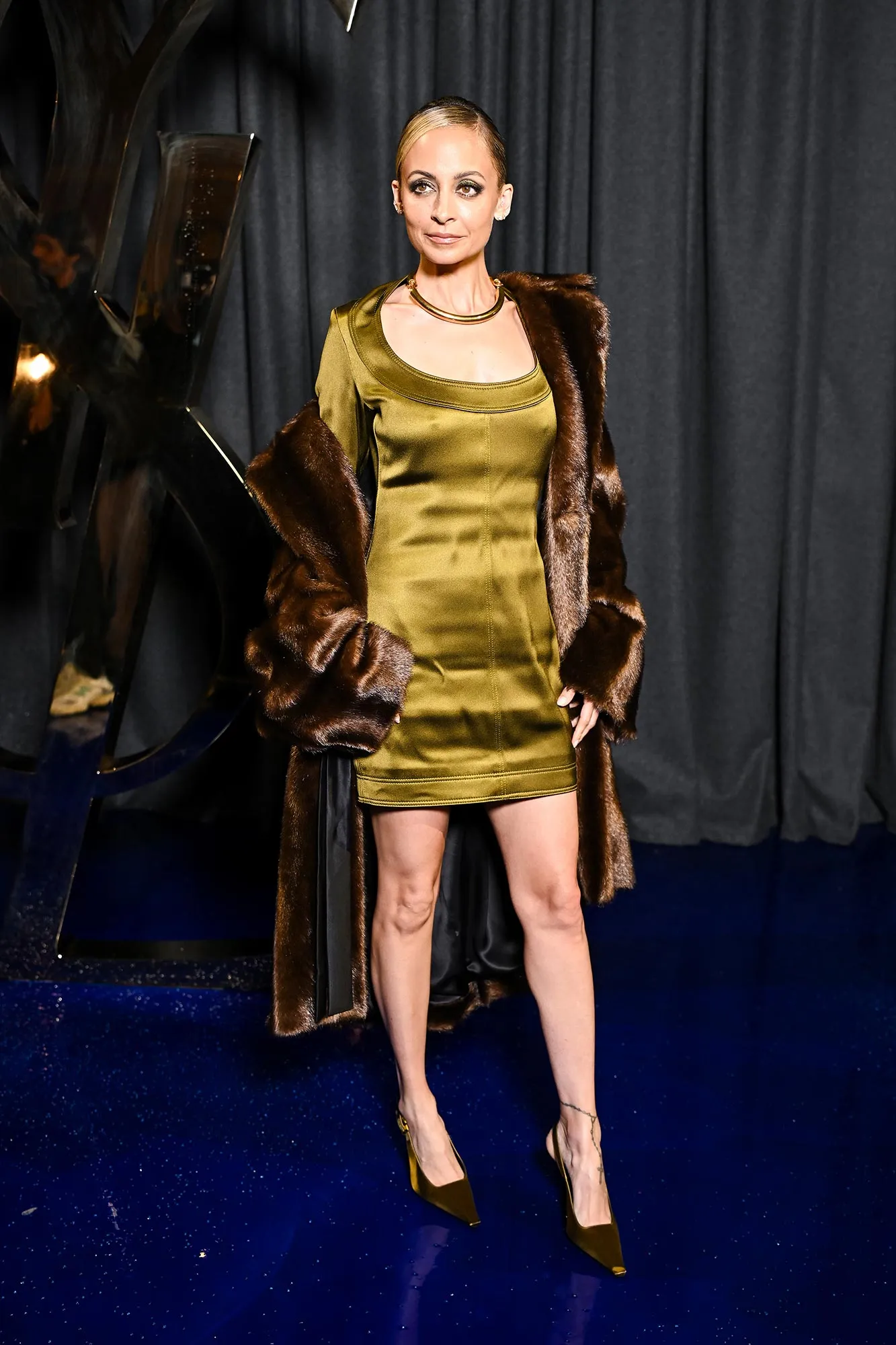 Gwyneth Paltrow, meanwhile, opted for an elegant suit at the Saint Laurent show on September 24. Her outfit featured a structured blazer and long pleated pants. The actress teamed the suit with a plunging gray top and patent leather pointed-toe kitten heels.