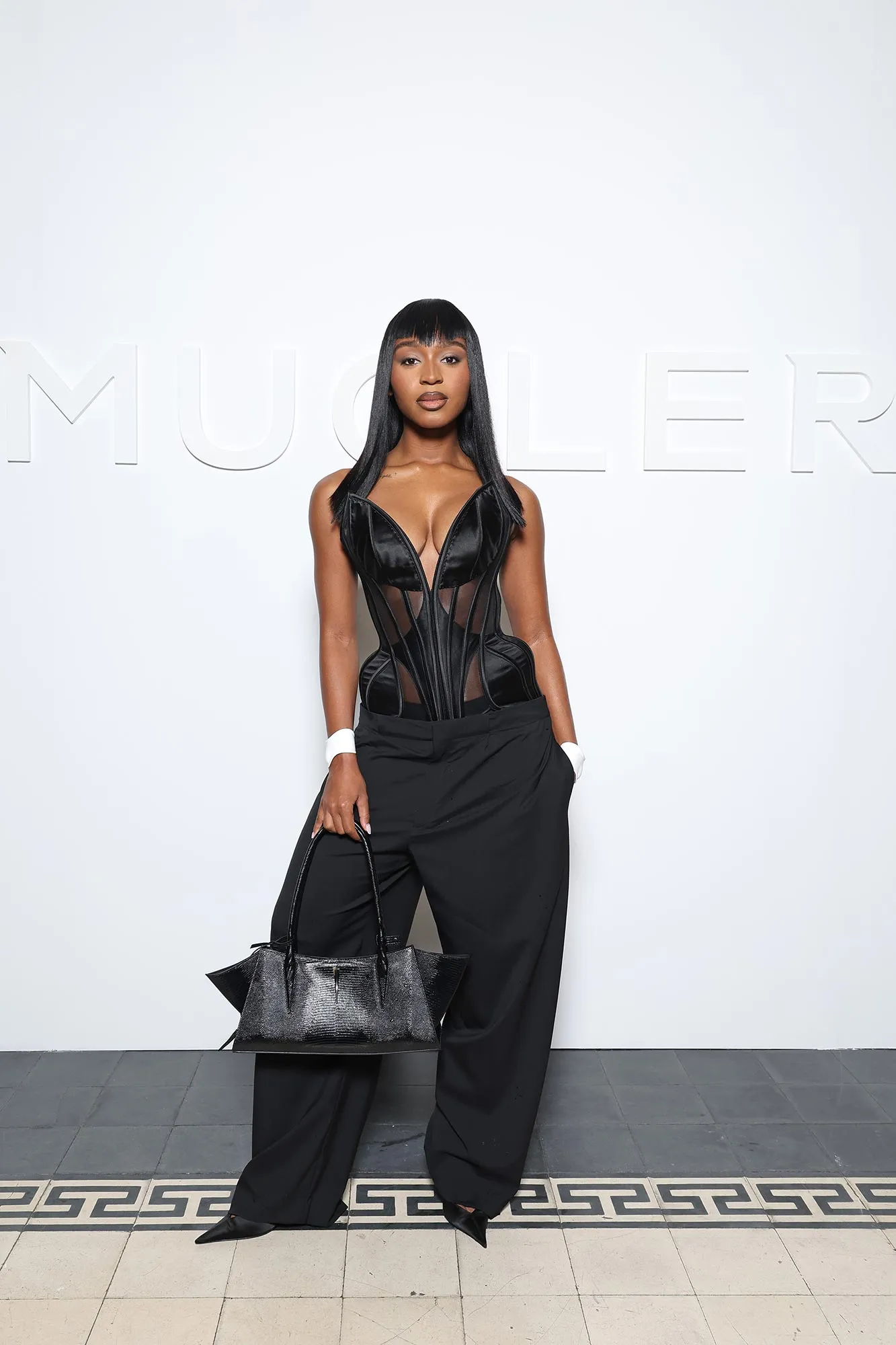 Take Cardi B, for example, who showed off her postpartum figure in a plunging coat and miniskirt at the Mugler show on September 26. Cardi, who welcomed her third baby with ex Offset on September 7, paired the sexy style with angled bangs that covered her eyes.