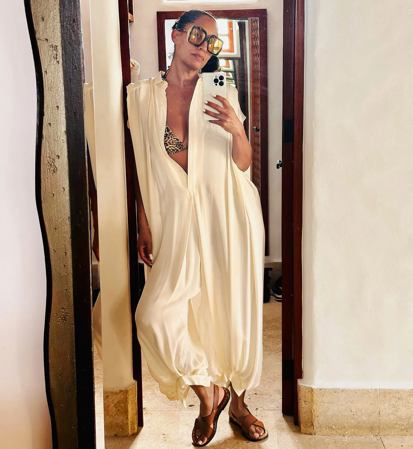 Sun’s out, buns out! Tracee Ellis Ross showed Us her wild side in sexy leopard print bikini.