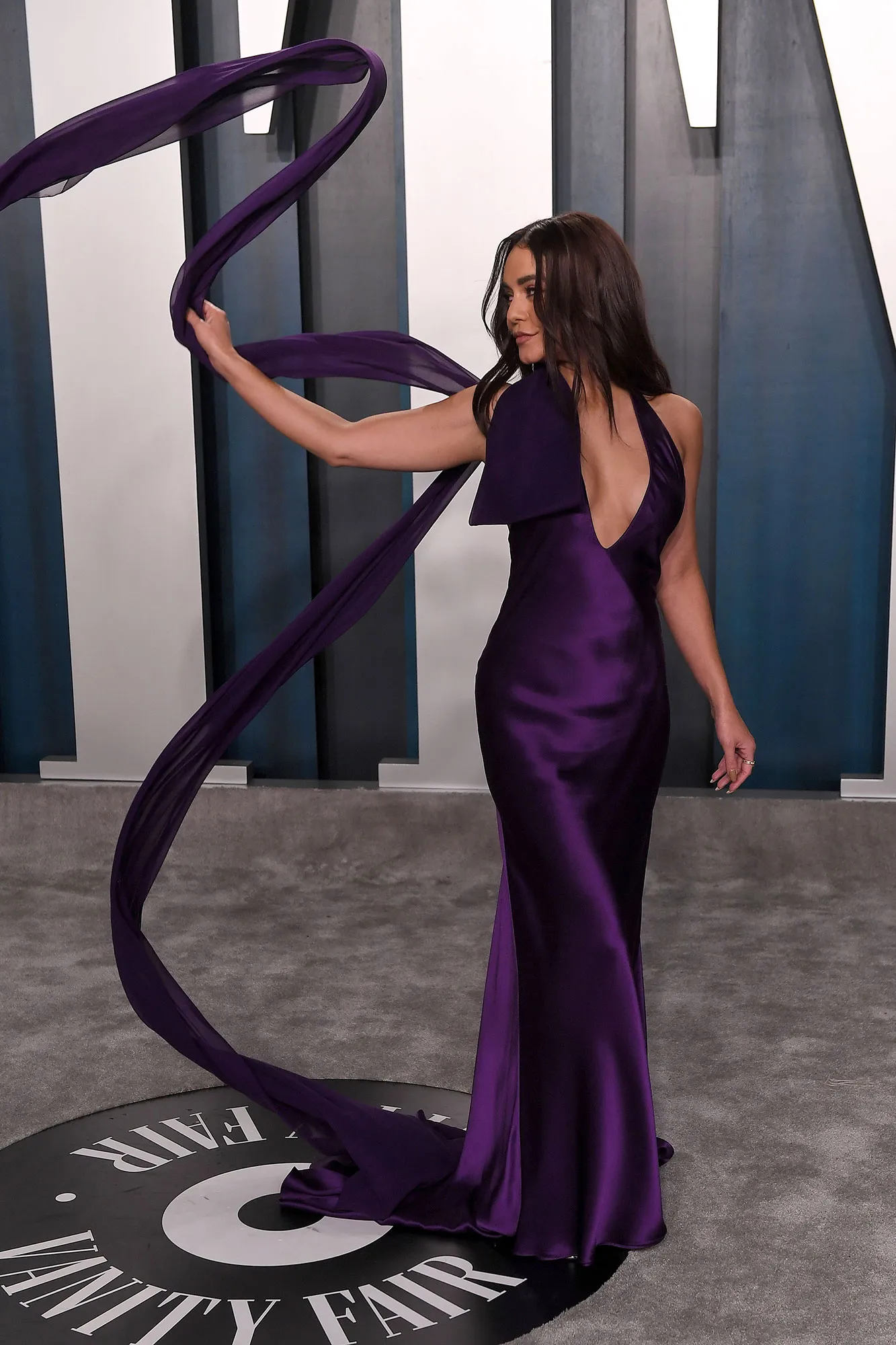 Vanessa Hudgens doesn’t need another man to make her whole! The actress, 31, stunned at Vanity Fair‘s Oscars afterparty on Sunday, February 9, wearing a plunging purple Vera Wang gown and Jimmy Choo shoes.