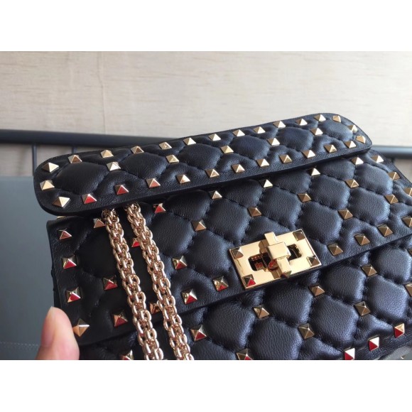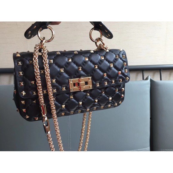 Valentino Rockstud Spike Small Bag In Black Nappa Lambskin