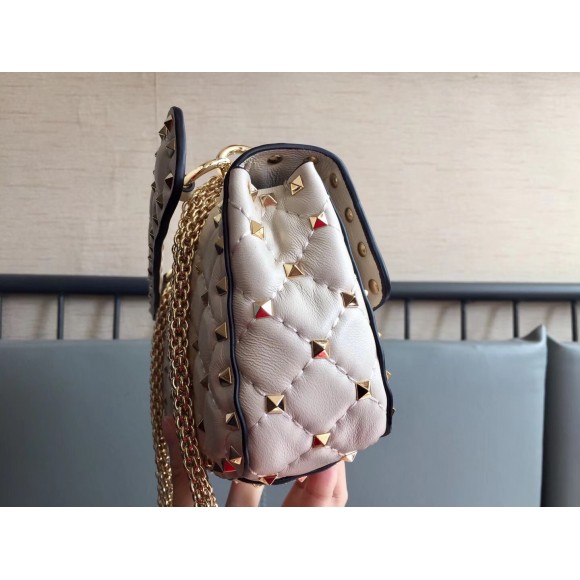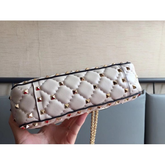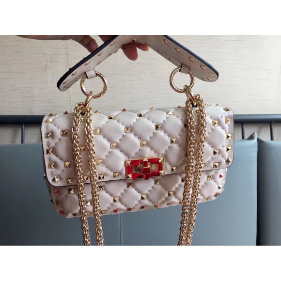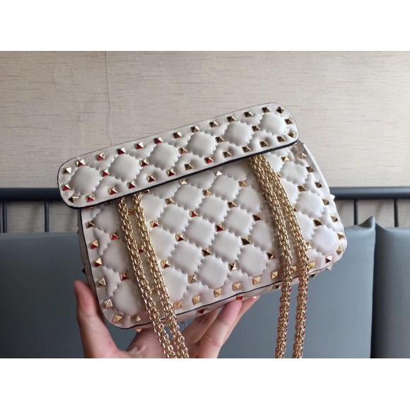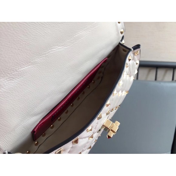 Valentino Rockstud Spike Small Bag In White Nappa Lambskin
