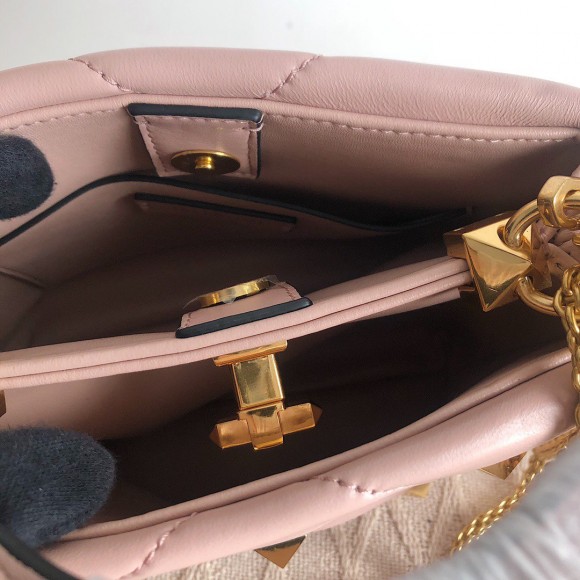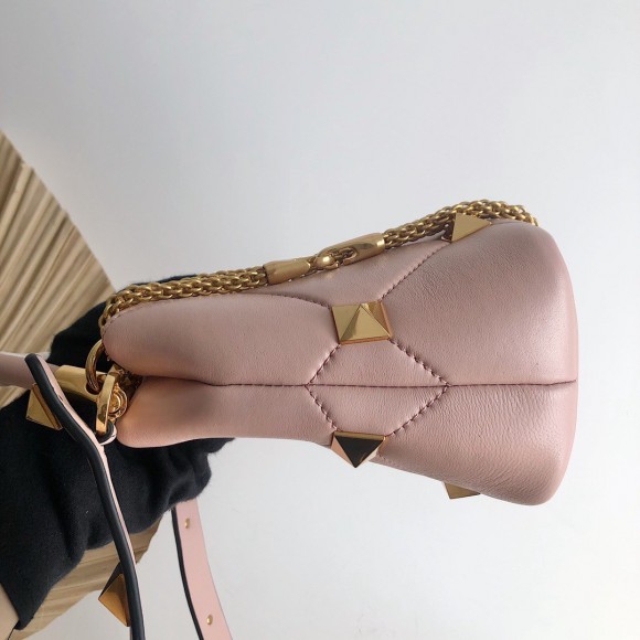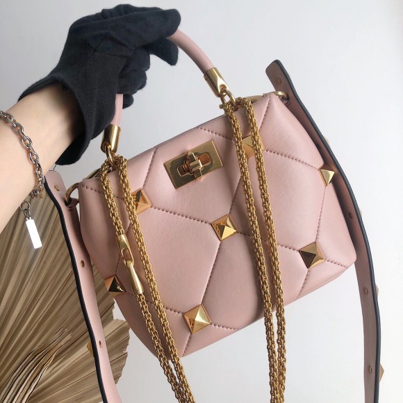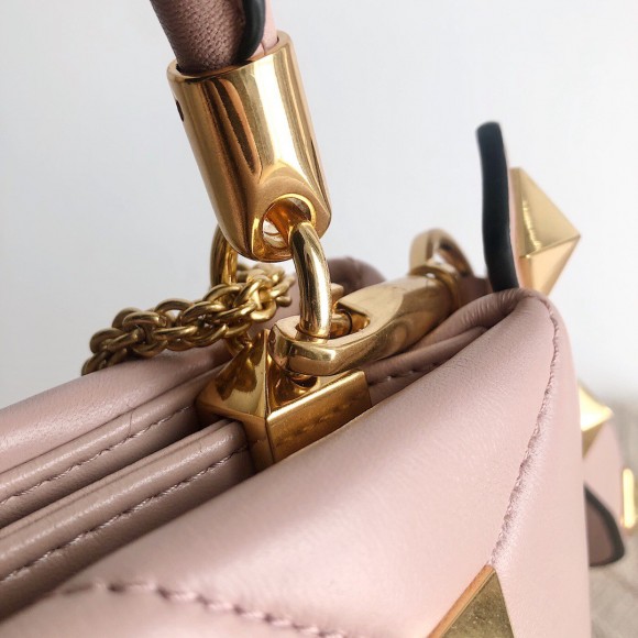 Valentino Roman Stud Small Handle Bag In Rose Cannelle Nappa Leather