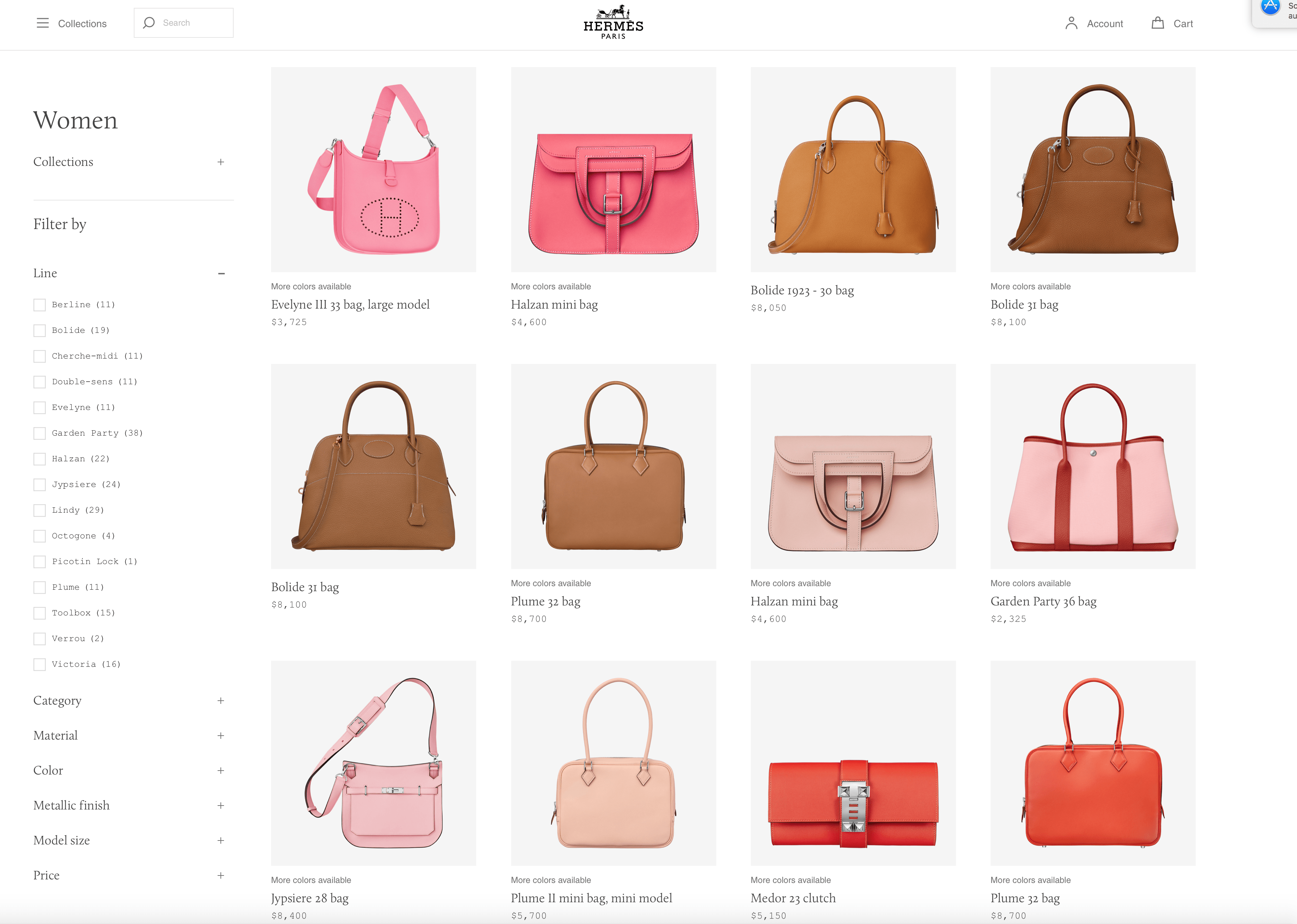 What about something other than the Hermès Birkin/Kelly/Constance trilogy? As we reported, last fall Hermès launched a new website, seemingly designed to improve the user experience, including on mobile devices. Online window shoppers can scan all of the bags or wallets available, rather than clicking back and forth to check out the merchandise.